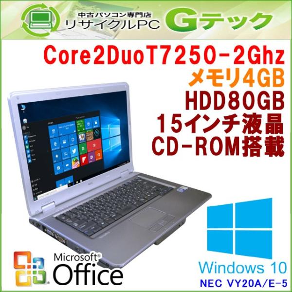 ギフト プレゼント ご褒美 中古 ノートパソコン Microsoft Office搭載 Windows10 Nec Versapro Vya Core2duo2ghz 3ヵ月保証 E 5 Hdd80gb 15 4型 メモリ4gb Cdrom